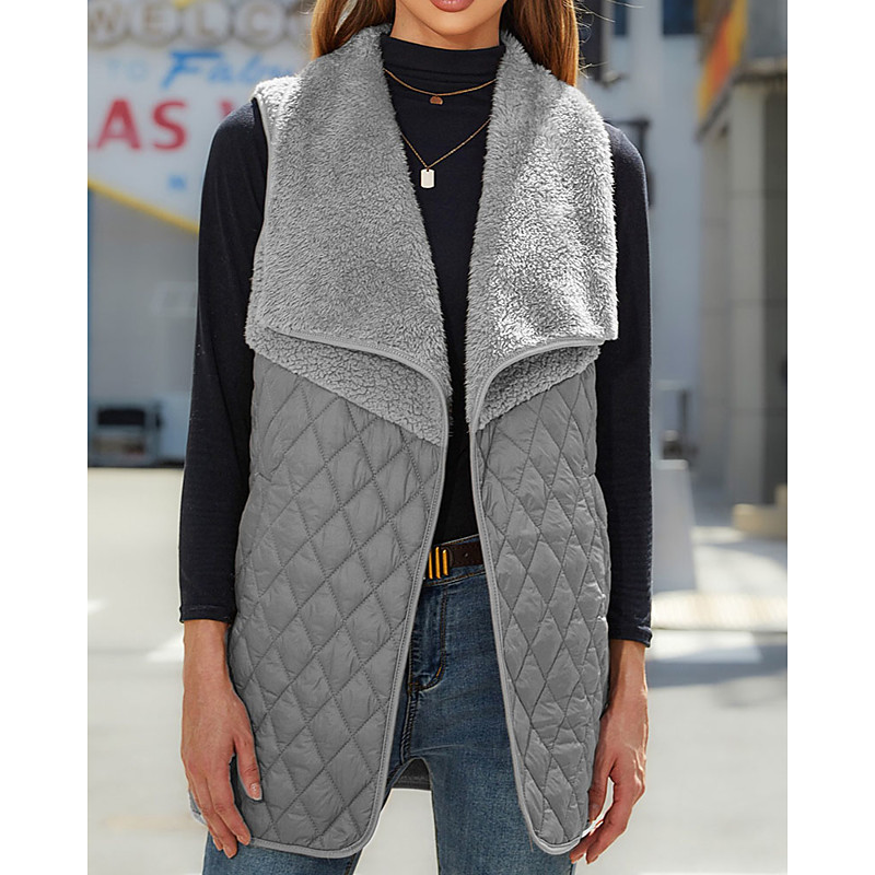 Women's Winter Coat Fleece Vest Vest Warm Comfortable Patchwork Pocket Elegant Fashion Casual Solid Color Vacation Street Casual Daily Wear Long Turndown Regular Fit Sleeveless Outerwear Black Camel