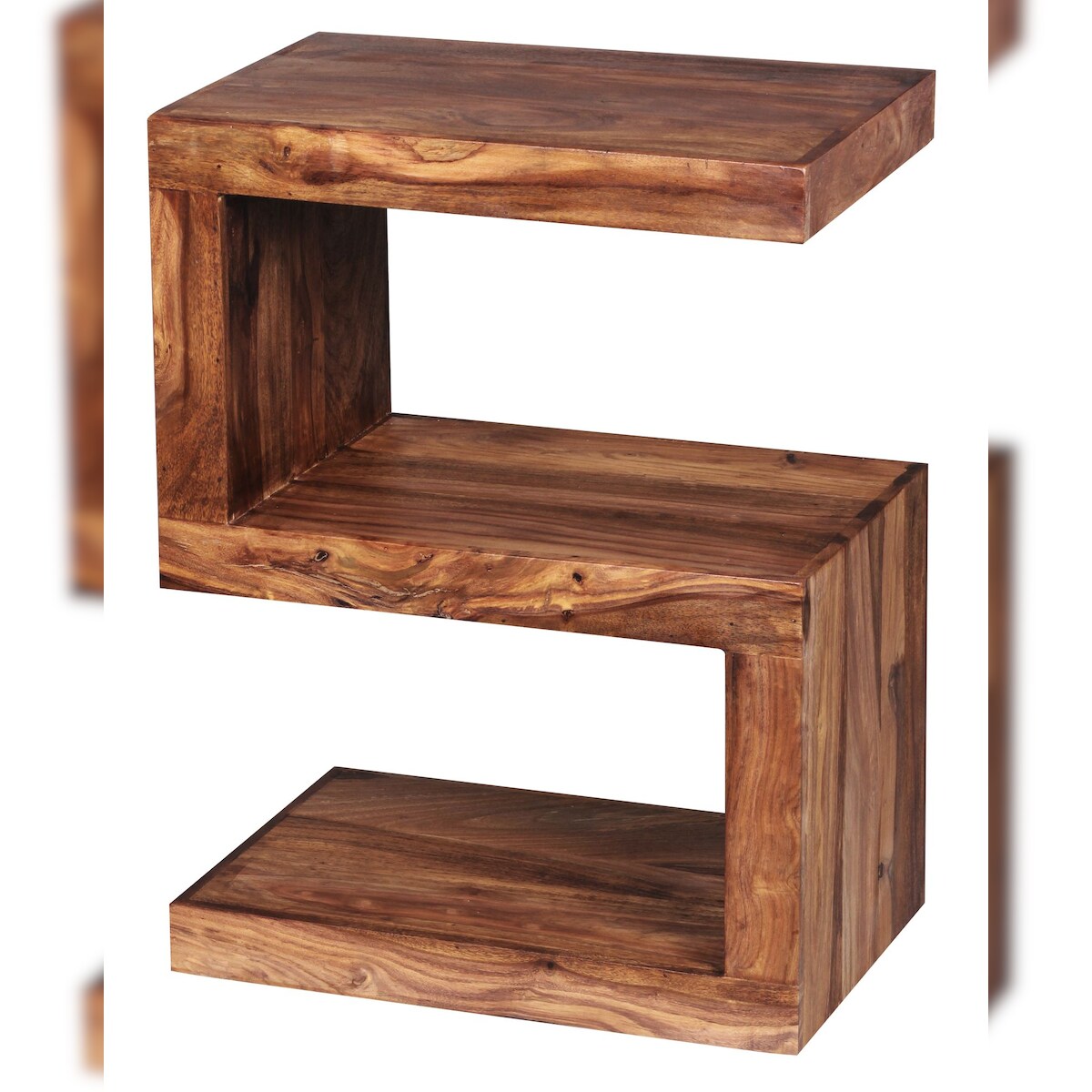 KADIMA DESIGN Beistelltisch MUMBAI Massivholz Sheesham S Cube 60cm hoch Wohnzimmer-Tisch Design braun Landhaus-Stil
