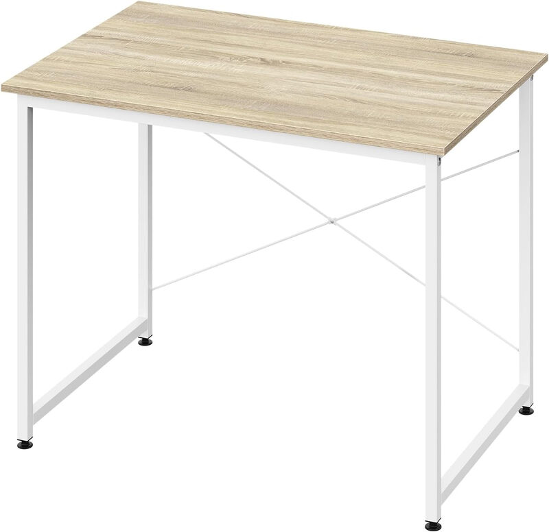 WOLTU Schreibtisch, Kleiner Computertisch, 80x60x70 cm, Bürotisch eckig, PC Tisch mit Metallgestell, für Büro Homeoffice Arbeitszimmer Schlafzimmer, aus Holzwerkstoff, Helle Eiche+Weiß
