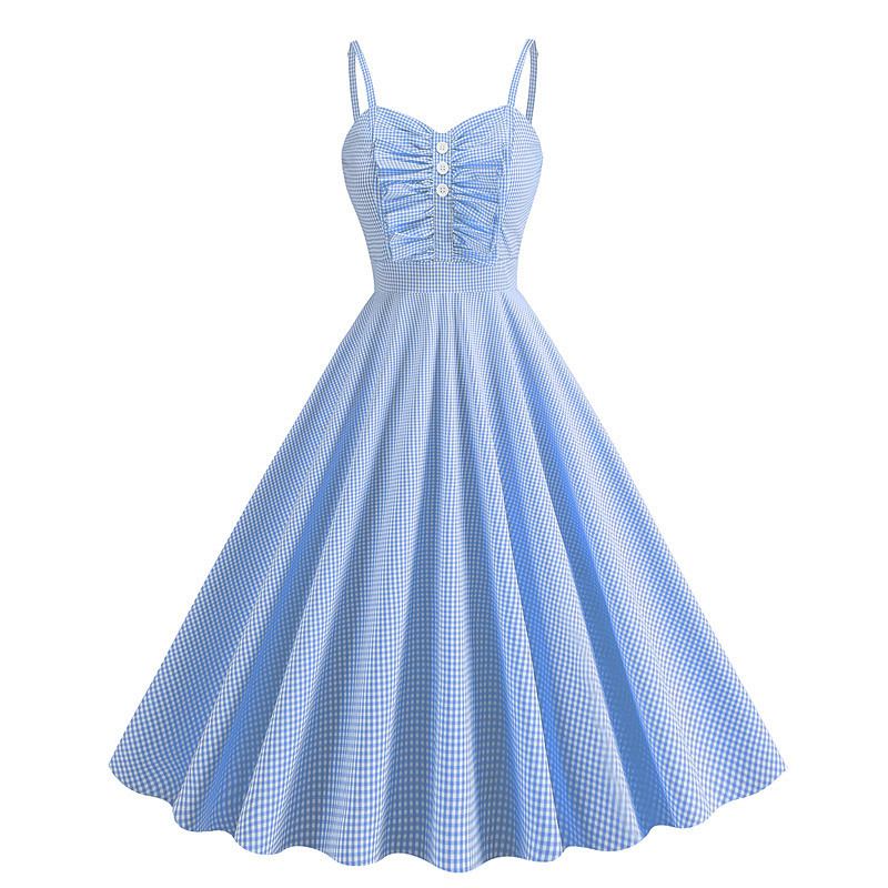 Retro Vintage 1950s Hepburn Midi Dress A Line Dress Flare Dress Spaghetti Straps Plaid Fit Flare Fancy Dress Women's Carnival Valentine's Day Casual Homecoming Retro Theme Party Adults' Dress