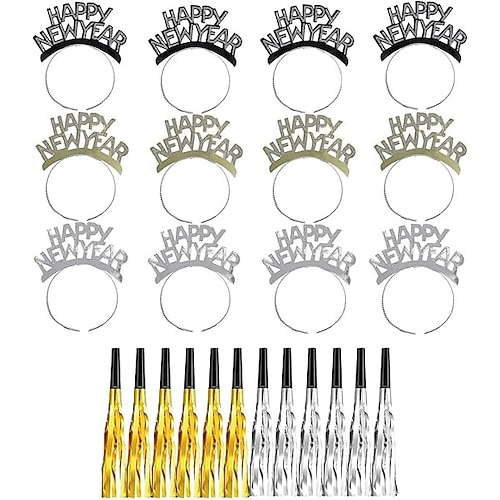decorazioni nere e dorate per la festa di capodanno 24 pezzi cerchietti per il capodanno 2026 set di strumenti rumorosi – bomboniere con decorazioni metalliche dorate e argentate per feste di