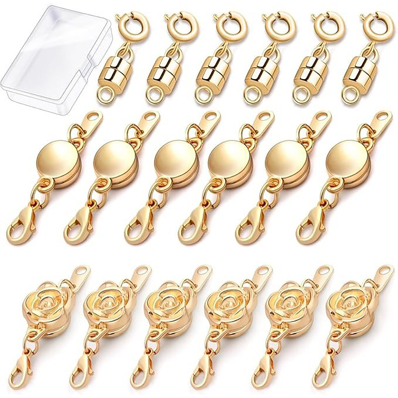 18 Pcs Magnetic Necklace Clasps and Closures,3 Styles Rose Round Cylindrical Jewelry Magnetic Clasp Connector Locking Magnetic Clasp Bracelet Extender for Jewelry Making