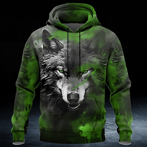 Per uomo Lupo Felpa con Cappuccio Felpa 3D Fantasia Girocollo All'aperto Abbigliamento casual alla moda Regalo Blu Rosso Verde Coulisse Autunno Inverno progettista S M L XL XXL XXXL