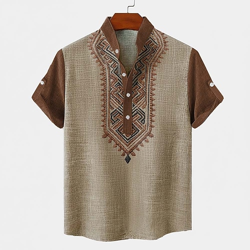 Per uomo Motivo Geometrico Tribale Etnico Camicia Camicia button-down Manica Corta Vintage Retrò Ferie Casual Quotidiano Estate Primavera Colletto Mao Colletto Henley Stampa 3D Camicia tipo lino