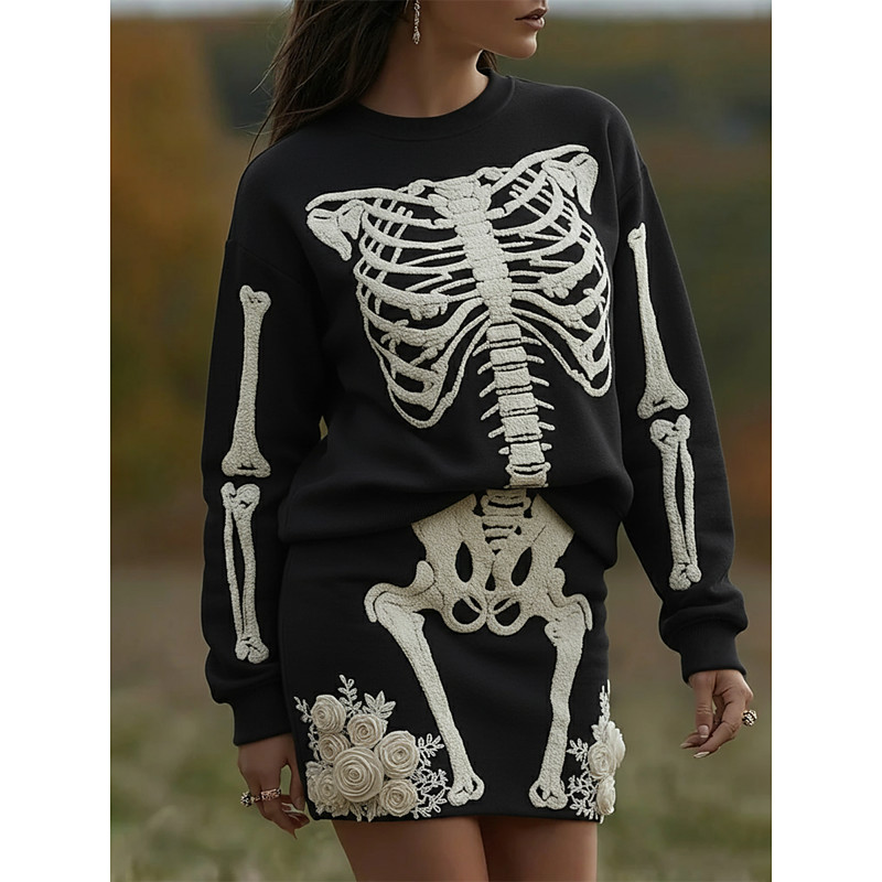 Women's Viking Pullover Sweatshirt Graphic Skull Punk Retro Casual Long Sleeve Crew Neck Regular Tops Street Dailywear Casual Black Spring Fall Winter
