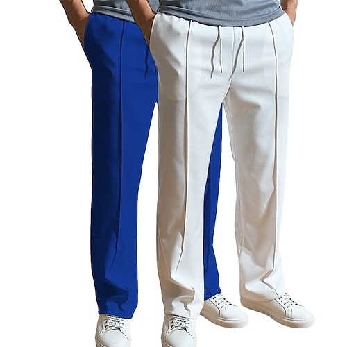Per uomo pantaloni della tuta Pantaloni Tasche Gamba dritta Liscio Matrimonio Ufficio Attività commerciale Misto cotone Moderno Da cerimonia Nero Bianco Vita alta Media elasticità