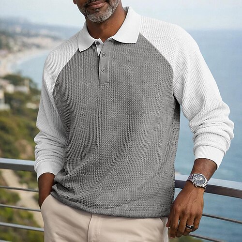 Per uomo Magliette Polo a Nido d'Ape Testurizzato Casuale Sport Outdoor Zip a un quarto Manica Lunga Moda Confortevole Con zip Tasca Autunno Primavera Autunno Interstagionale Vestibilità comoda