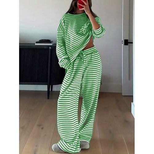 Per donna Tuta Set di Pantaloni Manica Lunga Girocollo A righe Elegante Moda Streetwear Casuale Quotidiano All'aperto Blu Nero Rosso Estate Vestibilità comoda