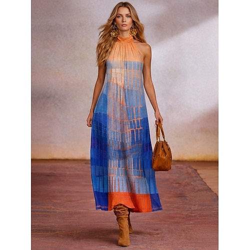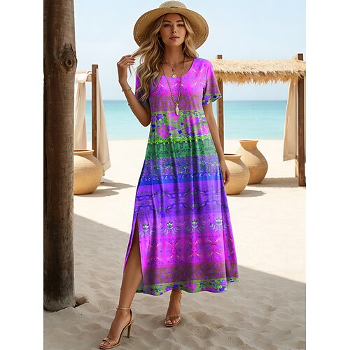 Per donna Abito Midi Abito a trapezio Casual Quotidiano Spiaggia Vestibilità comoda Grafico Geometrico Manica Corta Girocollo Blu Viola Arancione Verde Estate Primavera
