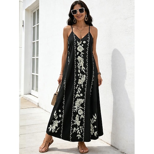 Per donna Abito maxi Vestito Estivo Abito a trapezio Abito Sottoveste Vacanza Casual Spiaggia Uscire Vestibilità comoda Grafico Tropicale Senza Maniche Scollo a V Nero Bianco Estate Primavera