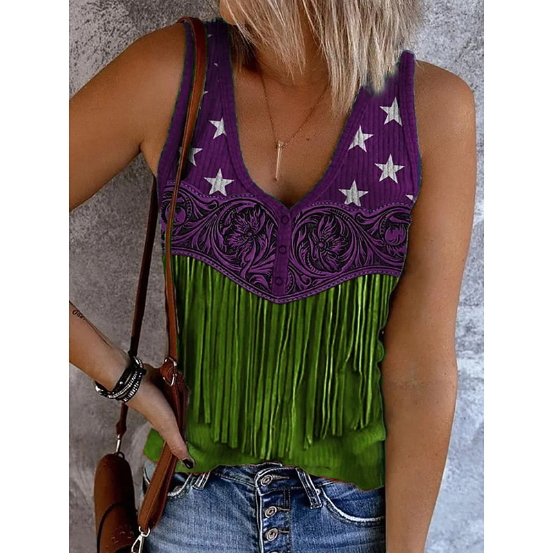 Women's Patriotic Camisole Tank Top Flag Stylish Casual Sleeveless Sleeveless V Neck Regular Tops Daily Print Red Purple Green Summer Spring