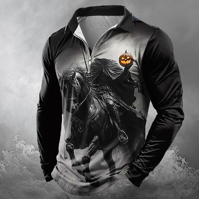 Men's Pumpkin Zip Polo Shirts Polo Shirts Lapel Casual Horror Dark Outdoor Festival Outfit 3D Print Spring Fall Winter Black Yellow Orange