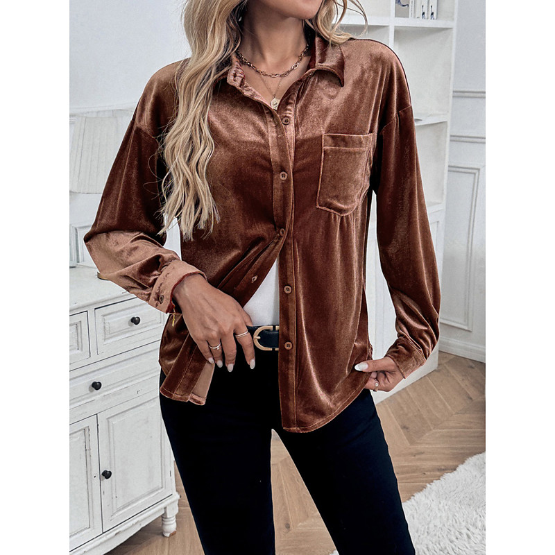Women's Blouse Solid Color Stylish Casual Long Sleeve Shirt Collar Regular Tops Daily Pocket Buttons Red Blue Brown Green Spring Fall Winter