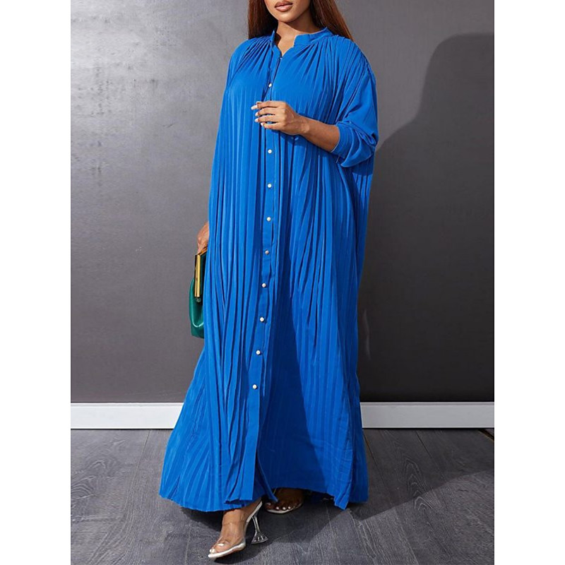 Women's Maxi Dress Shift Dress Pleated Dress Casual Daily Loose Fit Plain Long Sleeve Lapel Blue Yellow Fuchsia Summer Spring Fall