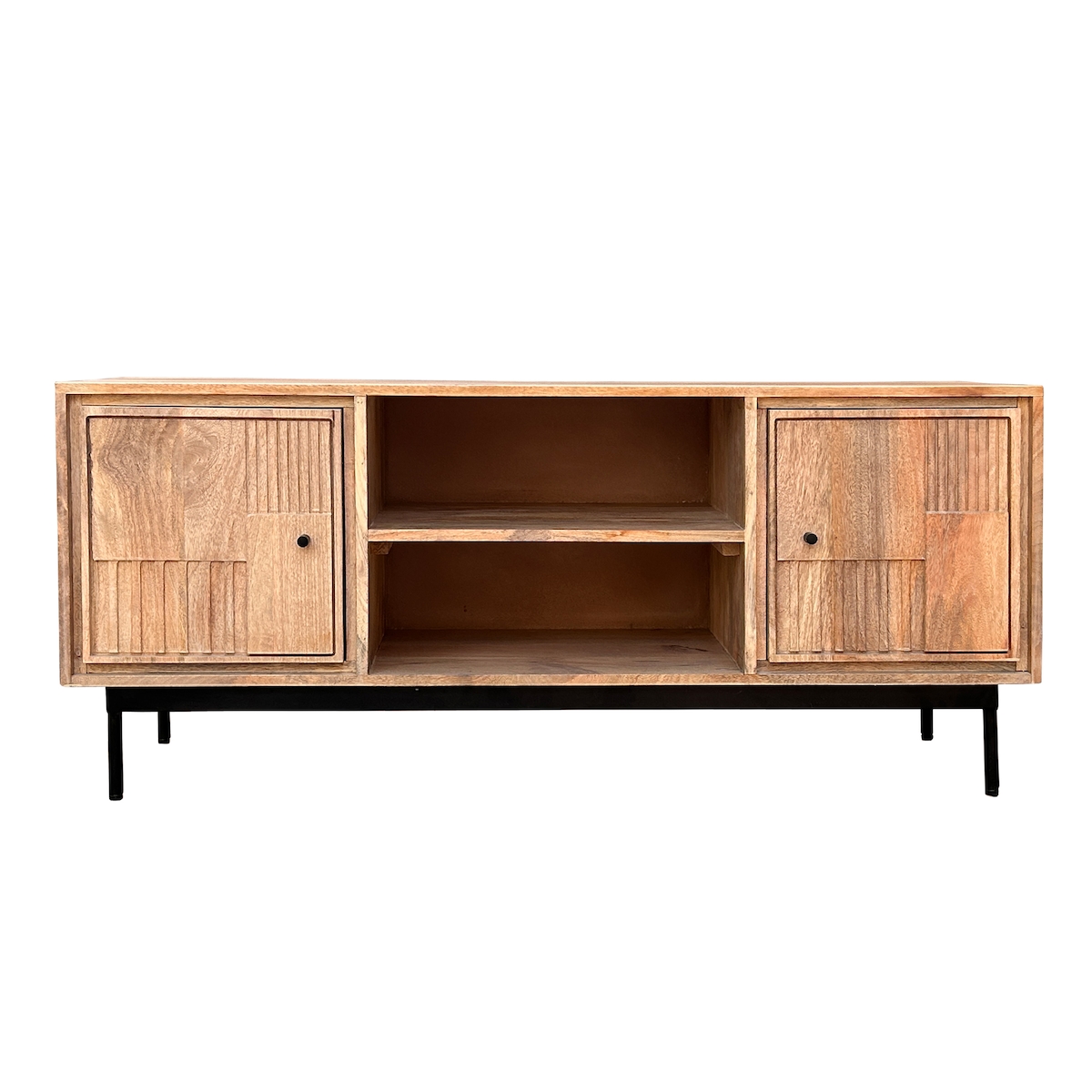 SIT Möbel Lowboard mit 2 Türen, 2 offene Fächer | Mango natur, Metallgestell schwarz | B 130 x T 40 x H 56 cm | 20015-01