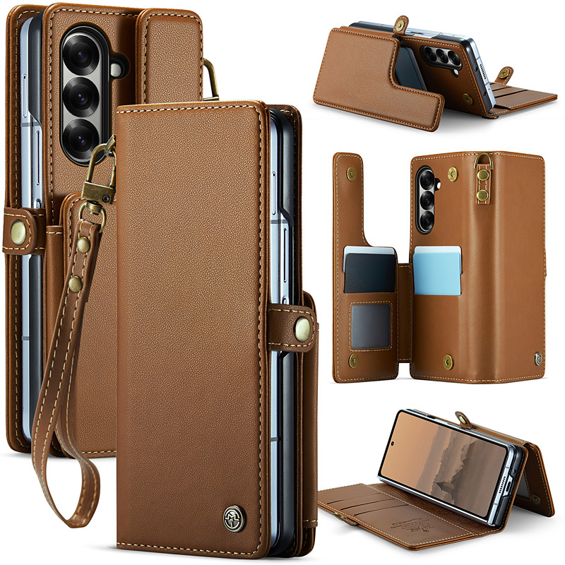 Handy Hülle Handyhüllen Für Samsung Galaxy Z Fold 7 Z Fold 6 Z Fold 5 Z Fold 4 Z Fold 3 Brieftaschenhülle Mit Handgelenkschlaufe Ringverschluss Stoßfest PC PU-Leder