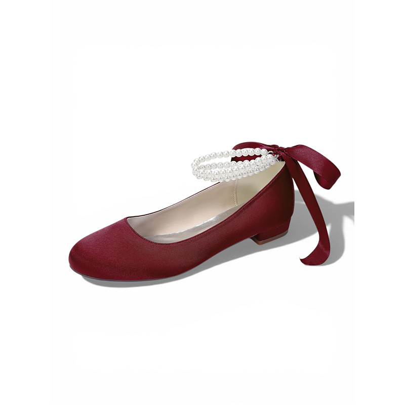 Women's Ivory Pearl Ankle Strap Flats, Elegant Ballet Bridal Shoes for Outdoor Garden Lawn Wedding