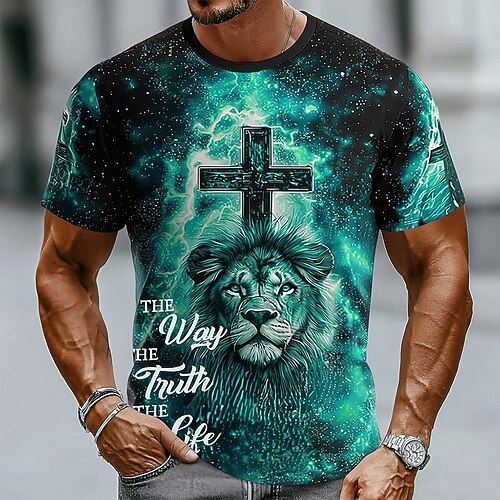 Maglietta T-Shirt Uomo Bibbia Leone Croce Cristiano Maglietta Maniche Corte Maglietta Stampa 3D Collo A Giro Camicia Religiosa Casual Quotidiana Festa Blu Rosso Verde Estate Primavera Abbigliamento