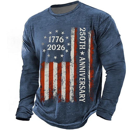 4 luglio 2026 250° Memorial Day Maglietta Uomo Stampa 3D Bandiera Americana Collo a Giro a maniche lunghe Casual Quotidiano