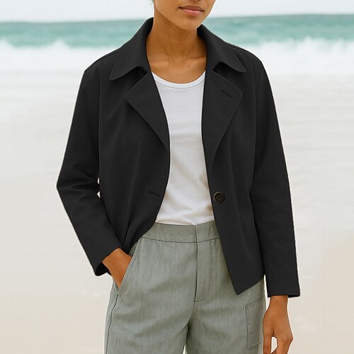 Damen Blazer Freizeitjacke Bequem Pailletten Mode Lässig Einfach Straße Alltagskleidung Ausgehen Wochenende Kurz Steigendes Revers Normale Passform Langarm Oberbekleidung Schwarz Himmelblau Braun