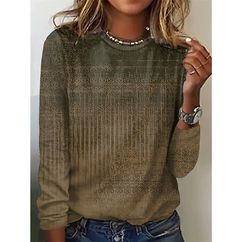 Women's T shirt Long Sleeve Crew Neck Long Sleeve Tunic Graphic Basic Round Neck Regular Tops Daily Weekend Print Red Blue Green Khaki Gray Fall Winter Prefall