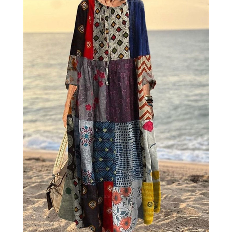 Women's Long Dress Maxi Dress Casual Dress Print Dress Elegant Fashion Modern Daily Outdoor Beach Regular Fit Graphic Long Sleeve Crew Neck Blue Red Orange Brown Spring Autumn