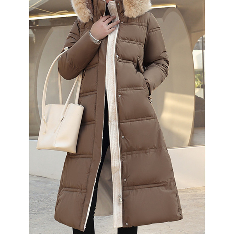 Women's Quilted Jacket Comfortable Breathable Pocket Buttons Fur Collar Casual Plain Vacation Street Casual Daily Wear Single Breasted Long Turndown Regular Fit Long Sleeve Outerwear Black White Blue