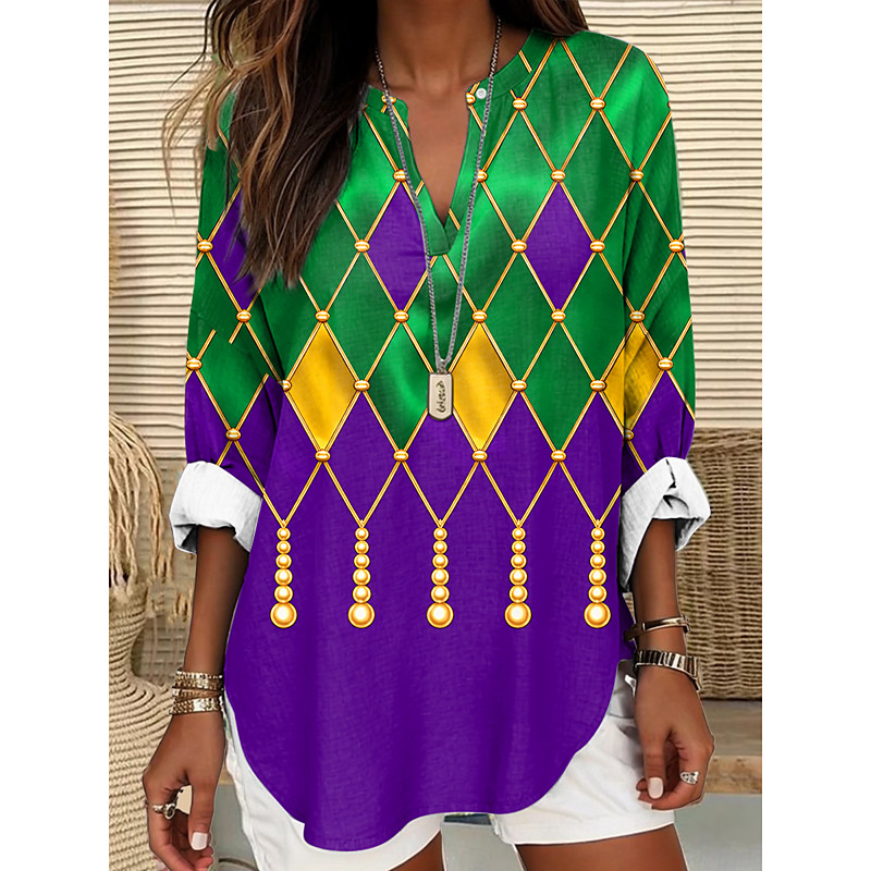 Mardi Gras Women's Shirt Graphic Vintage Daily Stylish Long Sleeve V Neck Long Tops Daily Holiday Print White Light Purple Purple Summer Spring