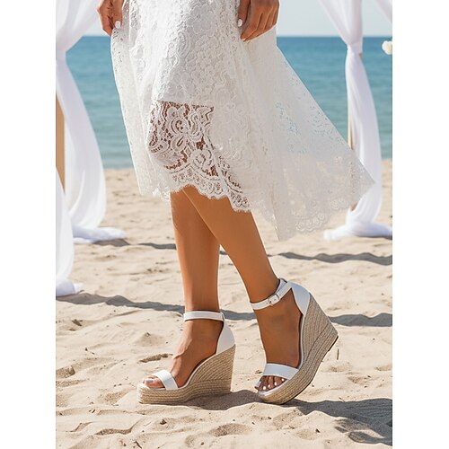 Brautsneaker aus Spitze zum Hineinschlüpfen – lässige Strandhochzeitsschuhe mit Schleifenverzierung bequeme Plateausohle, perfekt für Zeremonien am Meer