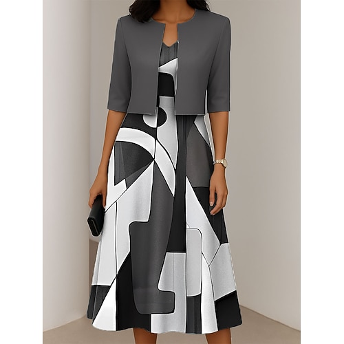 Per donna Insieme del vestito Abito a trapezio Abito Estivo Casual Abiti semi formali Ombre Grafico Stampato Abito Midi Mezza Manica Scollo a V Vacanza Data Rosa Verde Grigio Primavera Autunno