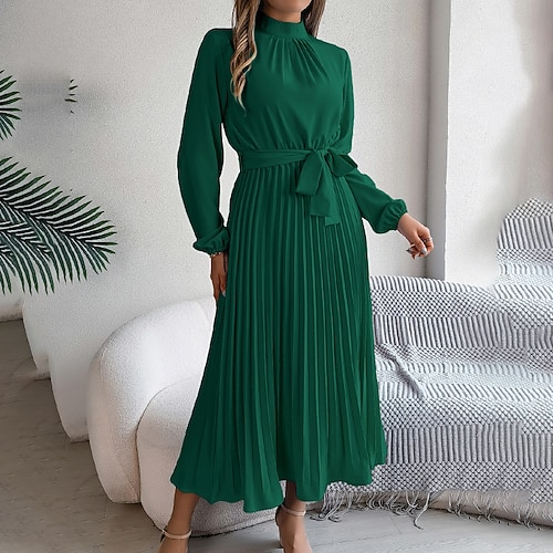 Per donna Abito Midi Abito in Raso Vestito da Festa Abito da Cocktail Elegante Moda Moderno Festa serale Feste Vestibilità regolare Semplice Manica Lunga Collo alla coreana Nero Rosa Vino Verde