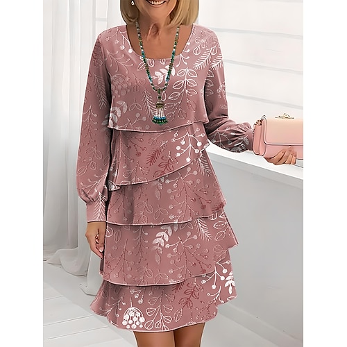 Per donna Mini Abito Abito a trapezio Abito a strati Elegante Casual Formale Vestibilità regolare Grafico Foglia Manica Lunga Girocollo Scollo Tondo Verde chiaro Rosa Viola Estate Primavera Autunno