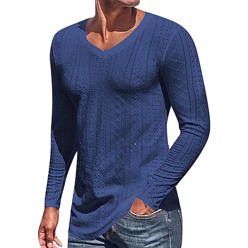 Herren T Shirt T-Shirt Langarmshirt Langarm V Ausschnitt Frühling Herbst Einfach Mode Designer Basic Jacquard Urlaub Straße Ausgehen Schwarz Weiß Blau Top T-Shirt für Herren