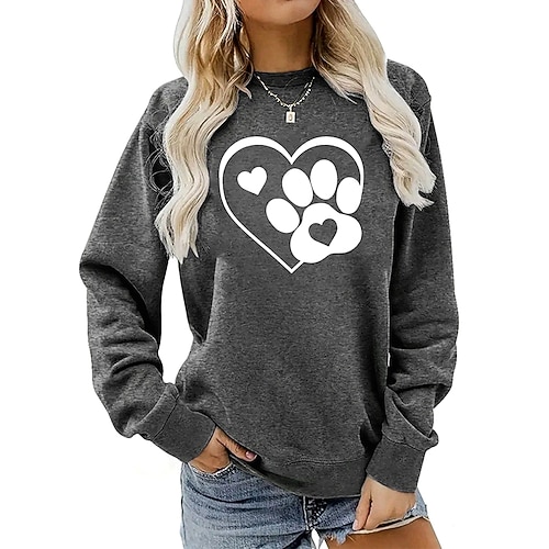 Per donna Felpa Pullover Cuore Floreale Grafico Moda Casual Manica Lunga Girocollo Top Regolari Streetwear Abbigliamento Quotidiano Casuale Stampato Nero Grigio chiaro Grigio scuro Grigio Autunno
