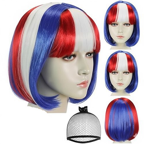 Parrucca di Carnevale Rosso Blu Viola Liscio Ciocca Corto Parrucca sintetica da festival Martedì grasso Parata Capelli per costumi da cosplay per Da donna