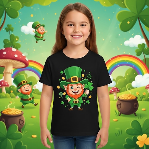 100% Cotone Giorno di San Patrizio Bambini Ragazze Blu Nero Bianco Giorno di San Patrizio Elfo di San Patrizio Maglietta Girocollo Manica Corta Vacanza Sport Outdoor Abbigliamento Quotidiano Attivo