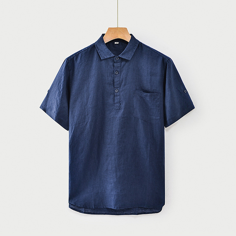 100% Linen Front Pocket Men's Shirt Linen Shirt Black White Dark Blue Short Sleeve Plain Lapel Summer Outdoor Daily Clothing Apparel
