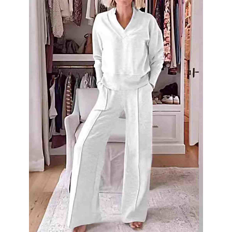 Women's Fashion Streetwear Pants Sets Long Sleeve Bell Sleeve V Neck Plain Daily Wear Date Brown Green Khaki Summer Regular Fit