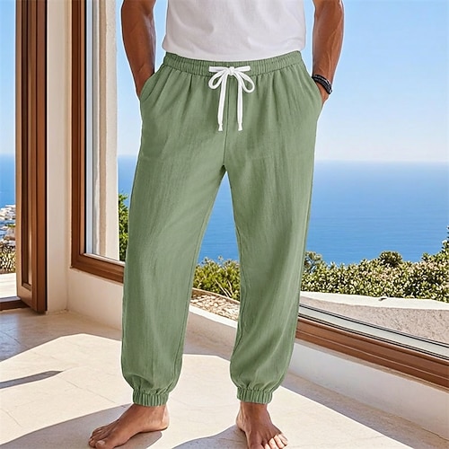 Per uomo Pantaloni di Lino Pantaloni Pantaloni Estivi Pantaloni da Spiaggia Coulisse Tasca Elastico in vita Semplice Comodità Traspirante Vacanza Quotidiano Ferie Hawaiano Boho Nero Bianco