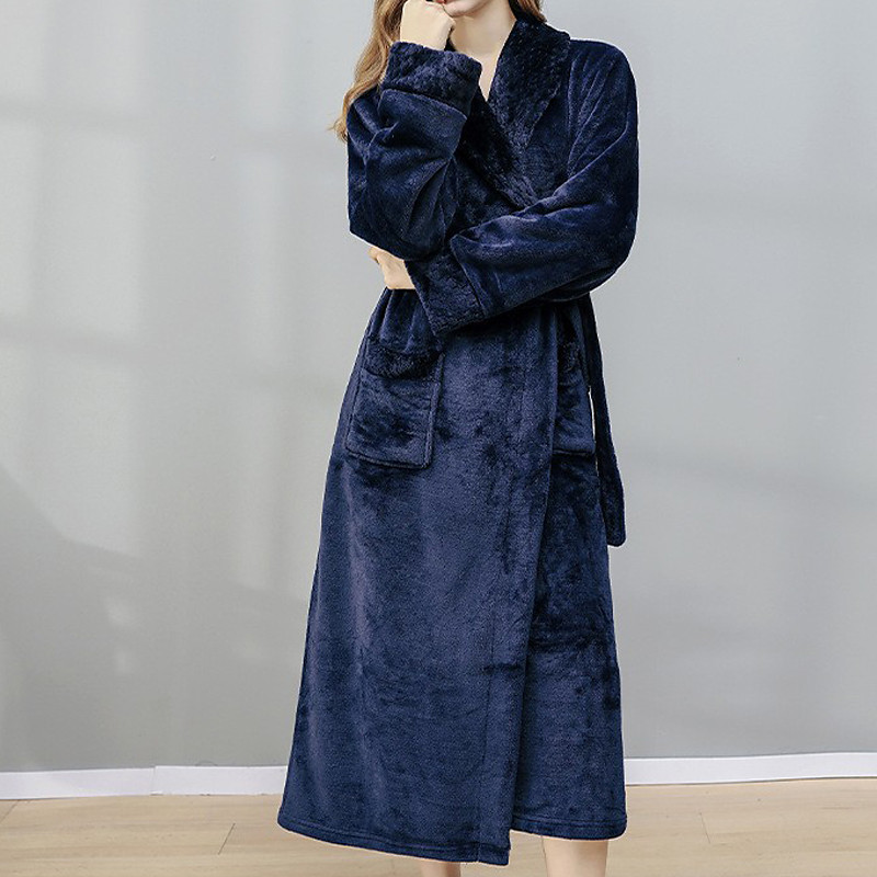 Women's Pajamas Robe Flannel Fashion Casual Pure Color Pocket Vacation Home Bed Long Sleeve Lapel White Pink Wine Navy Blue Gray Fall Winter Tailored Fit
