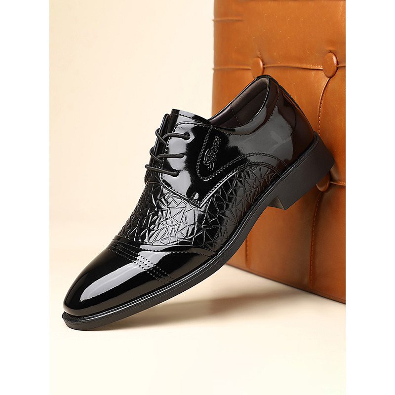 Men's Black and White Patent Leather Oxford Shoes with Geometric Pattern - Classic Dress Shoes for Formal Occasions and Weddings