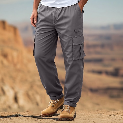 Per uomo Pantaloni Cargo Pantaloni da Combattimento Tasca con cerniera Tinta unica Semplice Asciugatura Rapida Leggero Lunghezza intera All'aperto Casuale Quotidiano Vacanza Stile Etnico Nero Verde