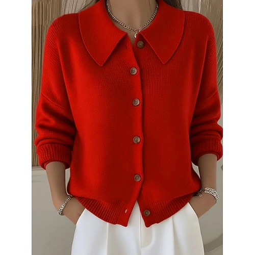 Per donna Felpa Casual Tinta unica Colletto a Camicia Bottoni Manica Lunga Top Regolari Maglia Casa Quotidiano Ferie Nero Bianco Autunno Inverno