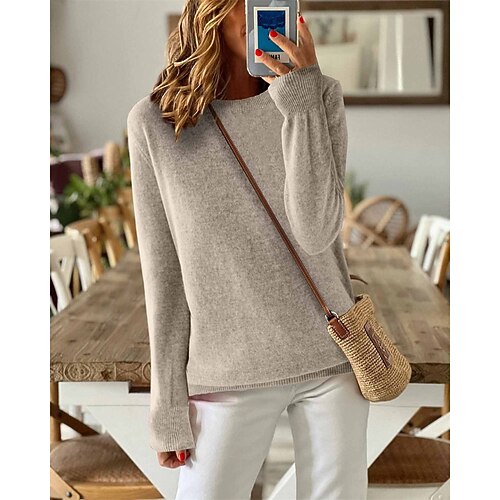 Per donna Felpa Maglione Elegante Moda Carino Tinta unica Girocollo Lavorato a maglia Manica Lunga Top Regolari Maglia All'aperto Casa Lavoro Nero Bianco Autunno Inverno