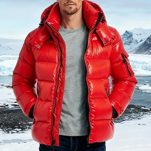 Per uomo Cappotto Invernale Giacca imbottita Imbottito Tasca Poliestere All'aperto Casuale Quotidiano Regolare Moda Streetwear Casual Calore Termico Inverno Tinta unica Blu Nero Giallo Rosso Piumino