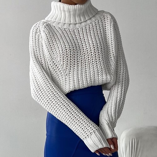 Per donna Felpa Maglione Streetwear Quotidiano Casual Tinta unica Dolcevita Lavorato a maglia Manica Lunga Top Regolari Maglia Quotidiano Ferie Uscire Bianco Autunno Inverno