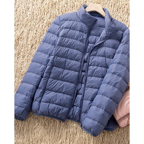Per donna Giacca Piumino Caldo Confortevole Cerniera Tasca Attivo Moda Semplice Streetwear Quotidiano Ferie Cerniera Regolare Collo alla coreana Vestibilità regolare Manica Lunga Capispalla Nero Vino