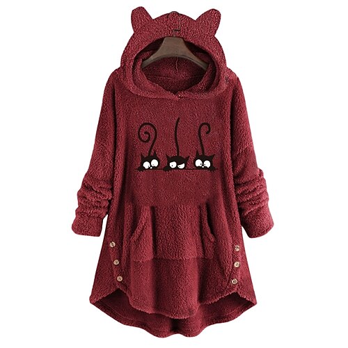 Per donna Felpa con cappuccio Gatto Lettera Casual Manica Lunga Con Cappuccio Top lunghi Streetwear Abbigliamento Quotidiano Casuale Rosa Vino Grigio Autunno Inverno