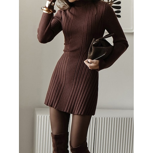 Per donna Abito maglione Elegante Casual Morbido Colore Puro A Coste Girocollo Lavorato a maglia Manica Lunga Top lunghi Maglia All'aperto Quotidiano Weekend Nero Vino Autunno Inverno