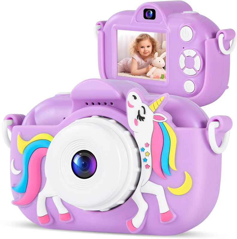 Songdian Kindercamera met cartoon-softcover – Geweldig kerst-, verjaardags- en feestgeschenk voor kinderen – Paars